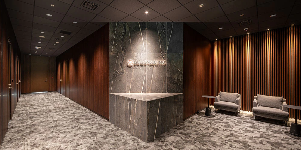 また、エントランスから続く形で4つの会議室を設置しています。こちらも来客対応にふさわしい高級感ある雰囲気に仕上げました。