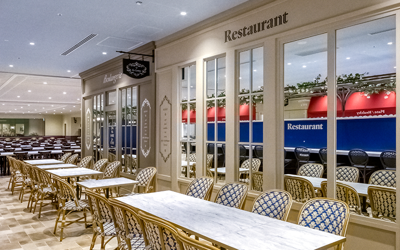 さまざまなショップが並ぶ、パリの街並みのイメージを表現