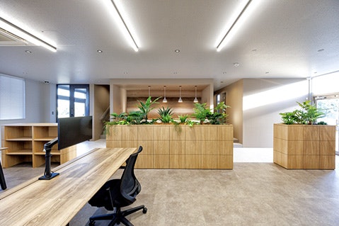 ご要望を踏まえ、日々の現場作業の疲れを癒し、安らぎを感じられるよう、オフィス(2nd place)に心地よさ(0.5th place)を加えた空間を目指しました。