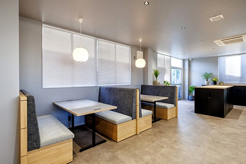 打ち合わせの他、食事や休憩もできるリフレッシュスペース。