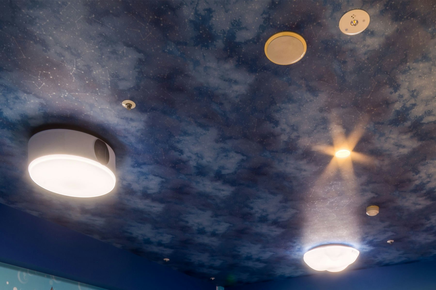夜には客室で星空を楽しめる仕掛けや、家族で横になりながら視聴できる収納可能な大型スクリーンを用意。キッズルームならではの演出でかけがえのない家族の時間を彩ります。