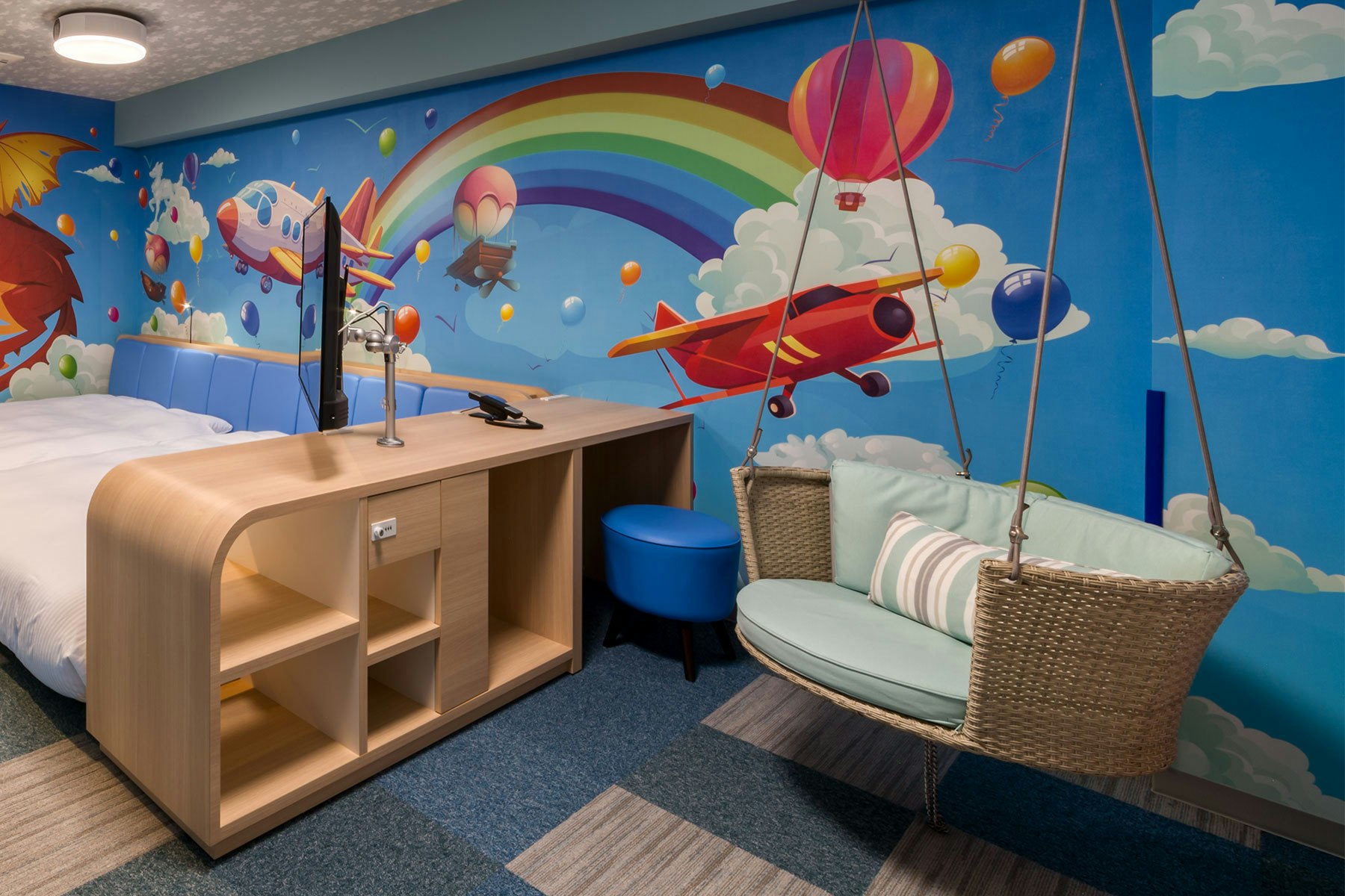 客室のテーマに合わせたデザインで楽しさ溢れる雰囲気を演出し、飽きのこない空間に仕上げました。