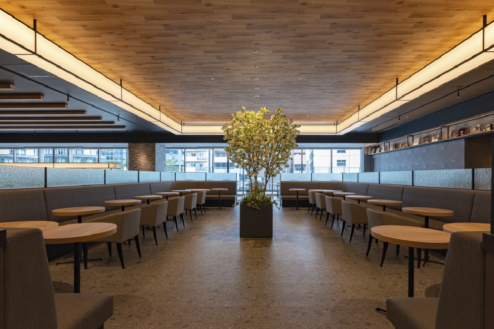 お客さまと一緒にラウンジのあり方を模索し、スタイリッシュでありながら馴染みやすい空間に仕上げました。
