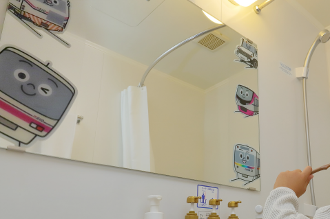 ユニットバスの鏡を見上げると「けい太くん」と目が合う仕掛け(提供:京王プレッソイン様)