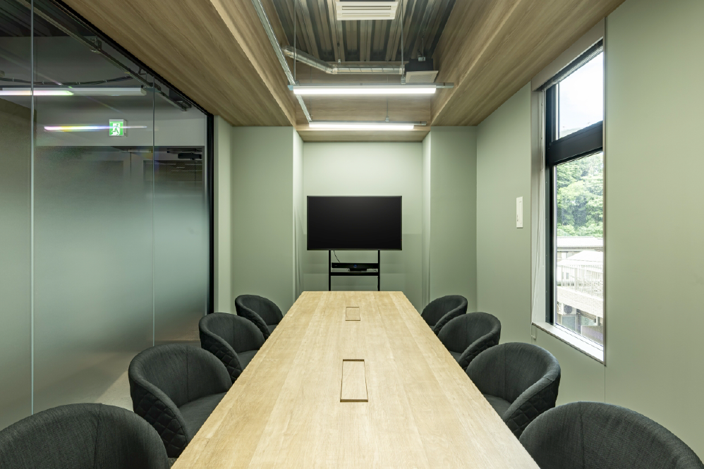会議室にはガラスパーテーションを採用することで、開放感を損なわない空間に